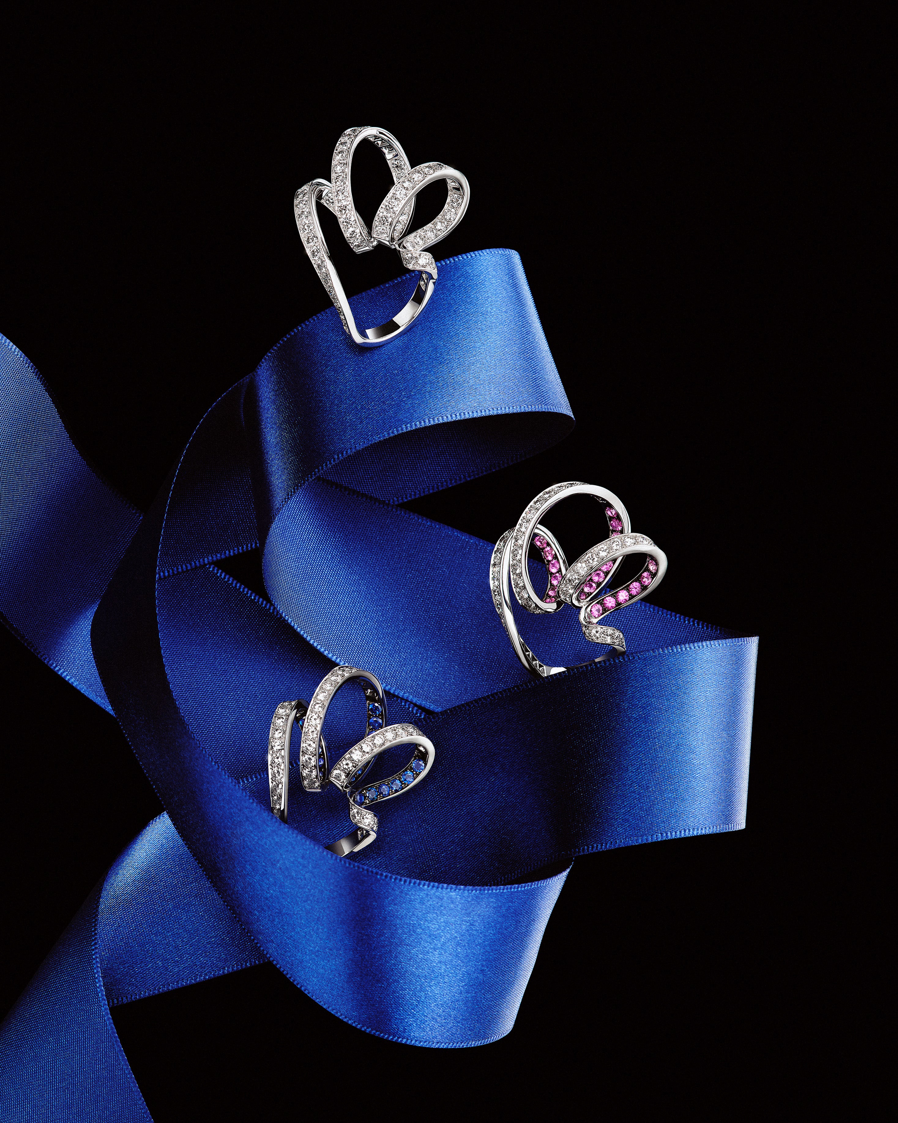 ARTFULLY COMPOSED, THIS SERIES CONSISTS OF EXQUISITE JEWELRY THAT APPEARS TO WRAP ITSELF, LIKE WEIGHTLESS RIBBONS, AROUND BOTH PRECIOUS STONES AS WELL AS THE CONTOURS OF THE BODY ITSELF.